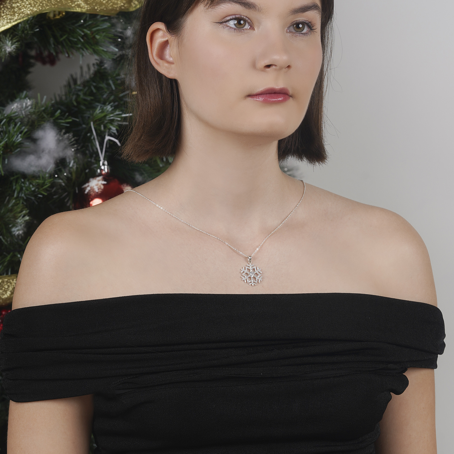 Dây chuyền DCJ30 lấy cảm hứng từ bông hoa tuyết lấp lánh, biểu tượng của sự thuần khiết, tinh tế và vẻ đẹp độc nhất. Mặt dây được thiết kế dạng bông tuyết sáu cánh sắc nét, đính những viên đá CZ nhỏ li ti tạo nên hiệu ứng lấp lóe khi chuyển động, nổi bật nhưng vẫn thanh lịch.